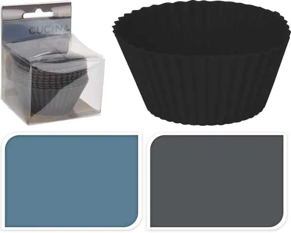 Forma do pieczenia muffinki silikonowe Zestaw 8 szt. mix kolorów Praktyczna i nowoczesna forma silikonowa do pieczenia muffinek. Produkt wykonany z wysokiej jakości silikonu. Dzięki właściwościom silikonu ciasto delikatnie odchodzi od formy, nie przywierając do niej. Formy posiadają szerokie zastosowanie min. możesz w nich piec oraz formować swoje ulubione słodycze np. galaretki, pudding, serniki gotowane lub na zimno. Informacje dodatkowe: Wymiary: 7x3.5cm, Zestaw 8 szt. Materiał:silikon Kolor: antracyt,niebieski. Towar wysyłany losowo.Użytkowanie: Piekarnik, Lodówka, Kontakt z żywnością,