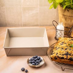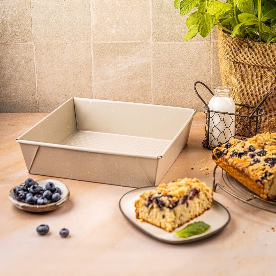 Kwadratowa forma KINGHoff KH-1974 to praktyczne i eleganckie naczynie do codziennego pieczenia. Wykonana z wysokiej jakości stali węglowej, równomiernie rozprowadza ciepło, gwarantując doskonały wypiek ciast, serników i zapiekanek. Marmurkowa powłoka nieprzywierająca pozwala ograniczyć użycie tłuszczu i ułatwia czyszczenie, a tekstura dna poprawia cyrkulację pary, dzięki czemu ciasto piecze się równomiernie bez ryzyka zakalca.