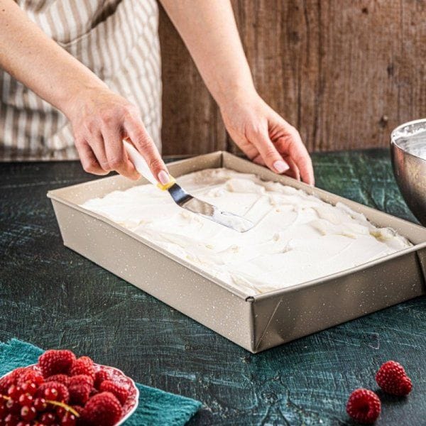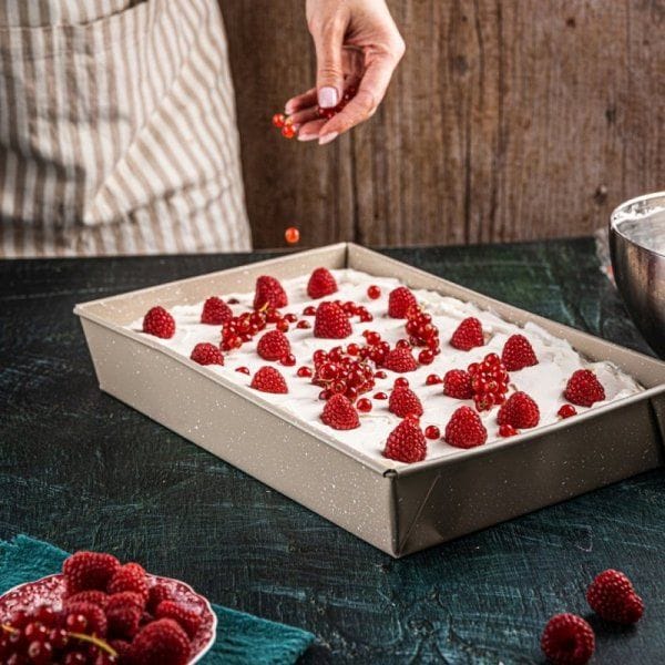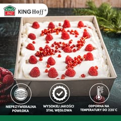 Forma KH-1975 została zaprojektowana dla osób, które cenią wygodę i estetykę w pieczeniu. Świetnie nadaje się do ciast biszkoptowych, serników, brownie, ciast z kremem, szarlotek oraz do zapiekanek i tart wytrawnych. Jej klasyczne wymiary 36,5×24×6 cm sprawiają, że pasuje do większości piekarników i pozwala uzyskać idealne proporcje wypieków.