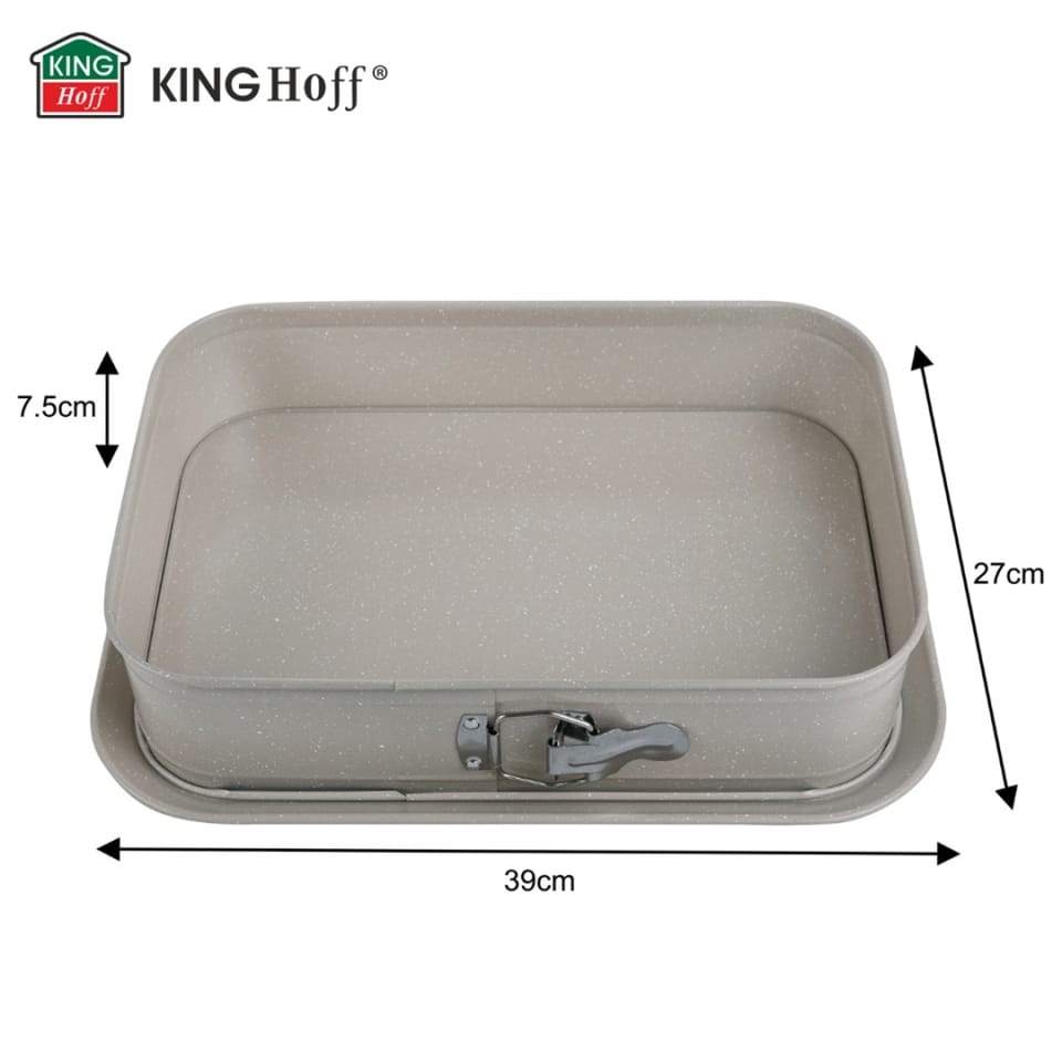 Forma KINGHoff KH-1978 to duża prostokątna forma do pieczenia w rozmiarze XL, stworzona dla wszystkich, którzy cenią domowe wypieki o profesjonalnym wyglądzie. Dzięki solidnej stali węglowej, marmurkowej powłoce nieprzywierającej oraz odpinanemu bokowi z klamrą, forma zapewnia perfekcyjny efekt – ciasta łatwo odchodzą od ścianek, a gotowy wypiek zachowuje idealny kształt.