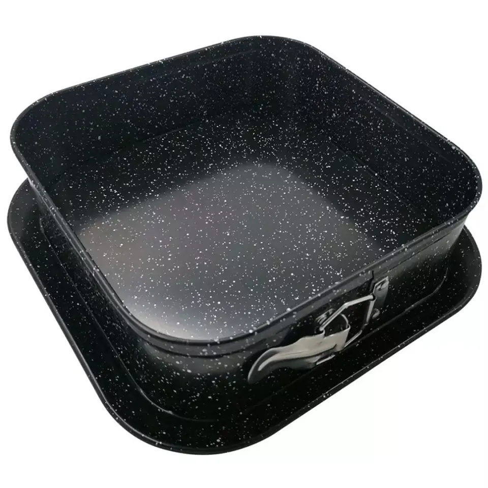 Kwadratowa forma z odpinanym rantem do pieczenia ciast firmy KINGHOFF. Dzięki możliwość rozpięcia rantu mamy możliwość łatwego wyjęcia z formy naszego wypieku. Forma pokryta jest powłoką marmurkową zapobiegającą przywieraniu wypieków.