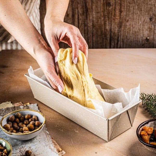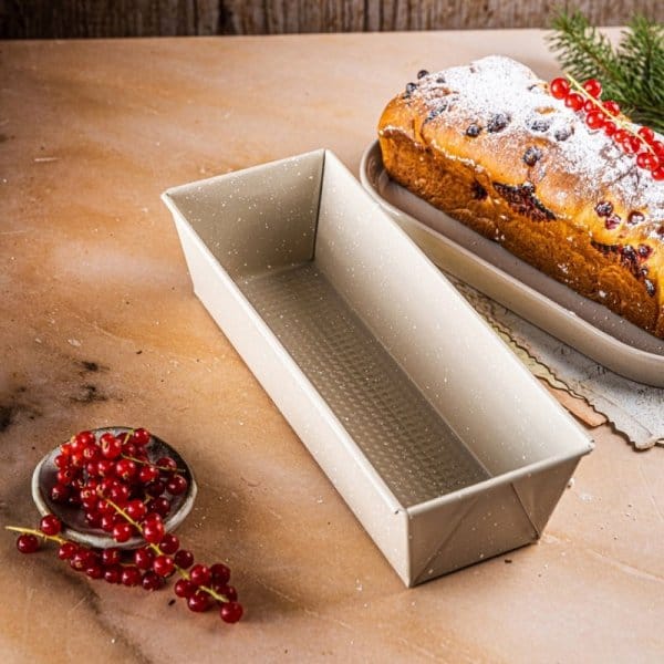 Dzięki delikatnie teksturowanemu dnu, forma zapewnia lepszy obieg powietrza i redukuje ryzyko zakalca. Jej elegancki, beżowy marmurkowy kolor doskonale komponuje się z nowoczesną kuchnią, a rozmiar 31 cm sprawia, że jest to model uniwersalny – do keksa, chleba, brownie czy pasztetu.