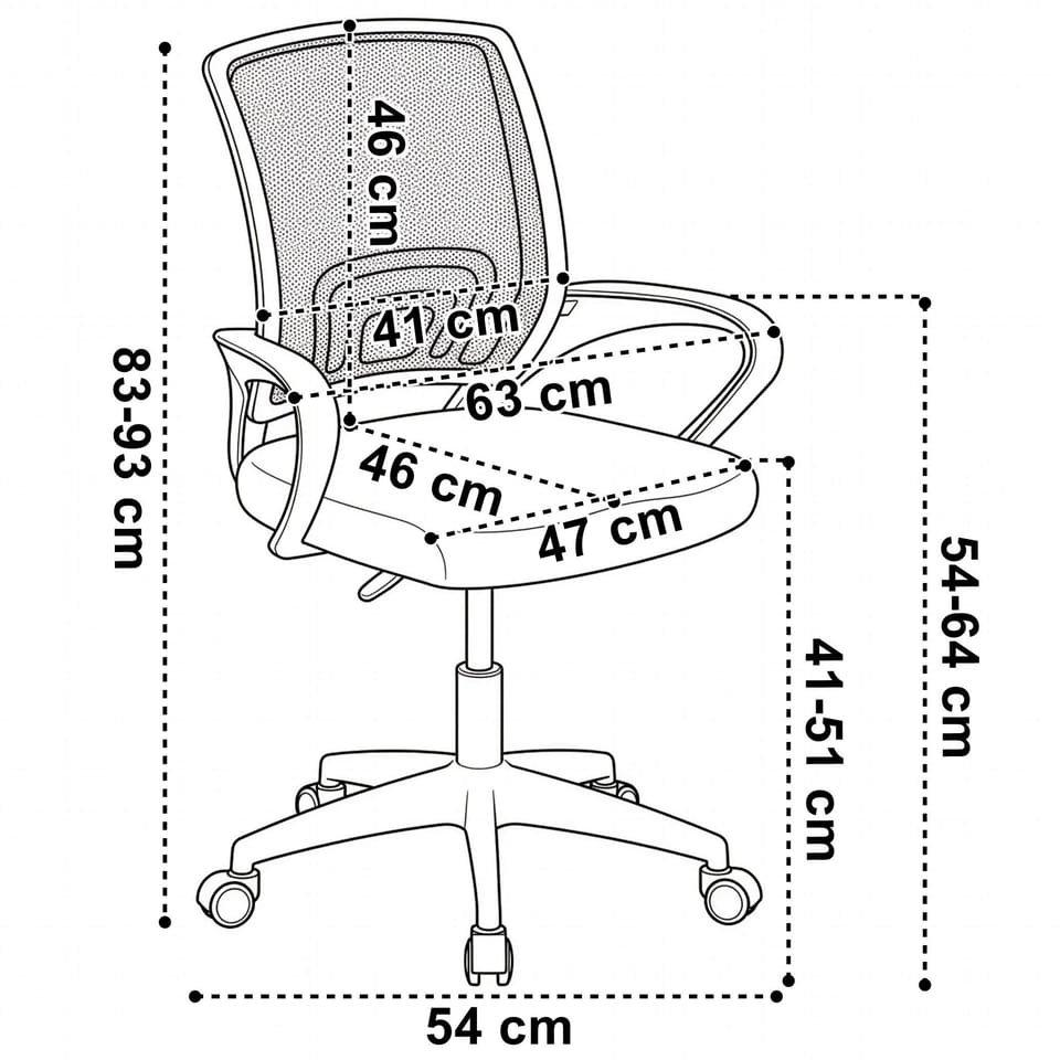 Fotel biurowy BIANCOKolor: czarny⭐️ Regulowana wysokość siedziska⭐️ Ergonomiczne oparcie⭐️ Oddychająca siatka⭐️ Gumowane kółka⭐️ Zakup od producenta ✍️ Specyfikacja:Płynna regulacja wysokości siedziskaCiche, gumowane kółkaErgonomiczne profilowane siedzisko i oparcie zapewni komfort pracySiedzisko i oparcie wykonane z elastycznej siatki, która zapewni oddychanie skórySiedzisko wypełnione piankąWygodne podłokietnikiSolidna i stabilna 5 ramienna podstawa na kółkachWbudowane podparcie odcinka lędźwiowegoMarka: eHokery✍️ Wymiary:Wysokość fotela: 83 - 93 cmSzerokość fotela: 63 cmGłębokość fotela: 59 cmWysokość do siedziska: 41 - 51 cmSzerokość siedziska: 47 cmGłębokość siedziska: 46 cmWysokość od siedziska do oparcia: 46 cmSzerokość oparcia: 41 cmRozstaw nóg: 54 cm Informacje dodatkowePrzedstawione kolory należy traktować poglądowo - mogą odbiegać od rzeczywistych ze względu na różne ustawienia monitorów oraz proces obróbki zdjęć. Rzeczywiste wymiary mogą się różnić od podanych wyżej. Tolerancja błędów może wynosić +/- 5%.