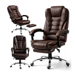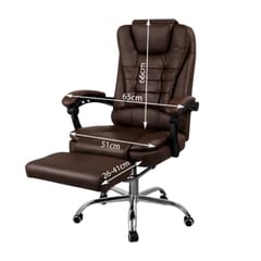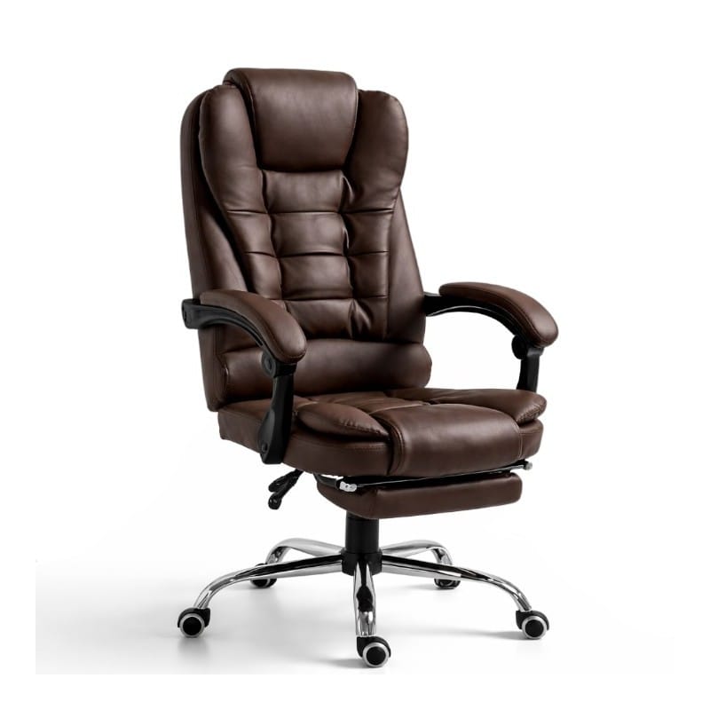 KOMFORTOWY FOTEL BIUROWY Z PODNÓŻKIEM Wymiary:Całkowita wysokość fotela: 102-110cmWysokość oparcia: 66cmCałkowita Szerokość: 51-65cmGłębokość podnóżka: 26-41cmKolor: brązMateriał: eko skóra, pianka EPEMaksymalne obciążenie 150 kg Cechy:Siedzisko, wypełnione miękką podwójną gąbkąOparcie, zagłówek powleczone ekoskórąRegulacja kąta odchylenia oparcia wraz z blokadaPodłokietniki pokryte gąbką oraz ekoskóraStabilna i wytrzymała pięcioramienna podstawaWysokiej jakości kółka plastikowe REGULACJA - fotel posiada regulacje wysokości siedziska.Dzięki temu możesz dostosować jego wysokość do swoich indywidualnych potrzeb co jest niewątpliwą zaletą.Możliwość regulacji odchylenia fotela, (90 -155 stopni) gwarantuje Ci chwilę relaksu i rozluźnienia. Pokrycie - szerokie siedzisko, oparcie, zagłówek oraz wierzchnia strona podłokietników powleczone wysokiej jakości ekoskóra, oraz zastosowanie pianki EPE. Wymiary opakowania:68 x 58 x 34 cm Waga: 16 kg Zdjęcia przedstawiają rzeczywisty produkt.