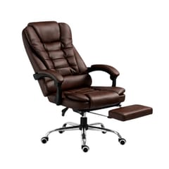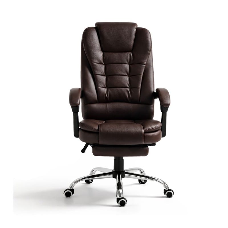 Fotel biurowy obrotowy BOSS z podnóżkiem - brązowy SKÓRA KO22BR