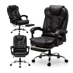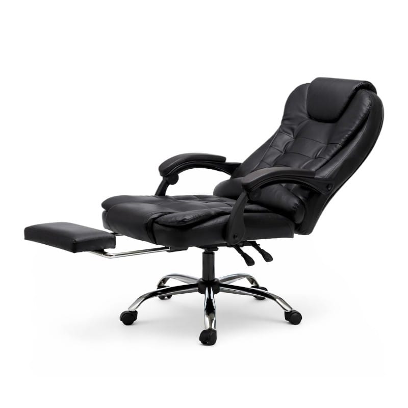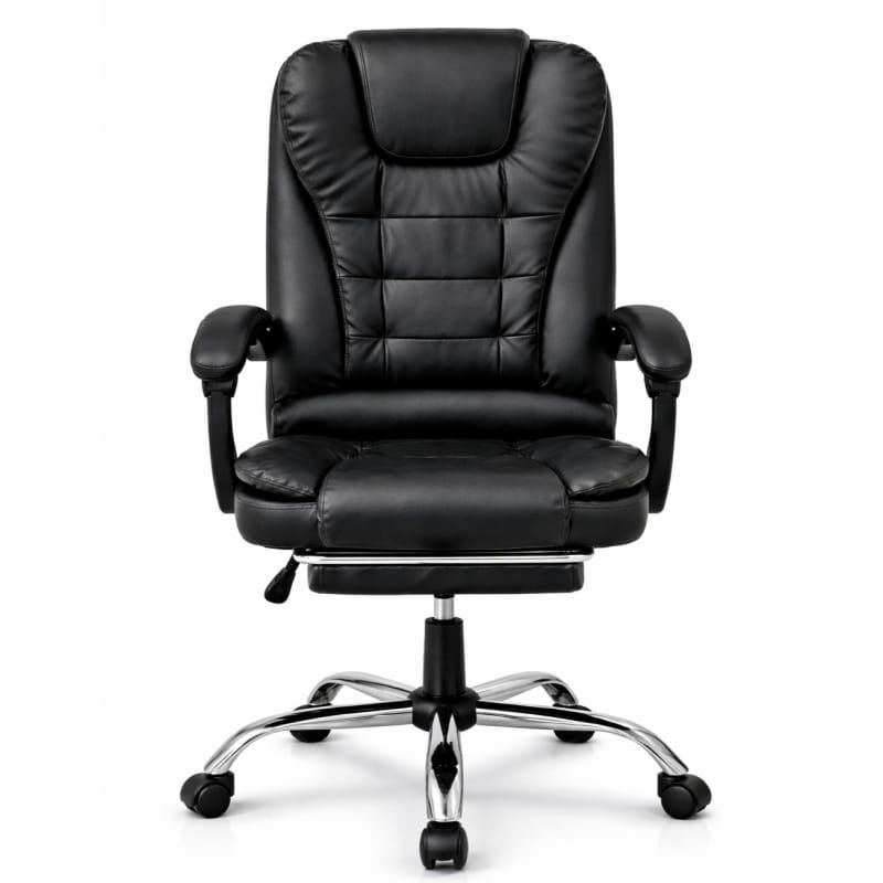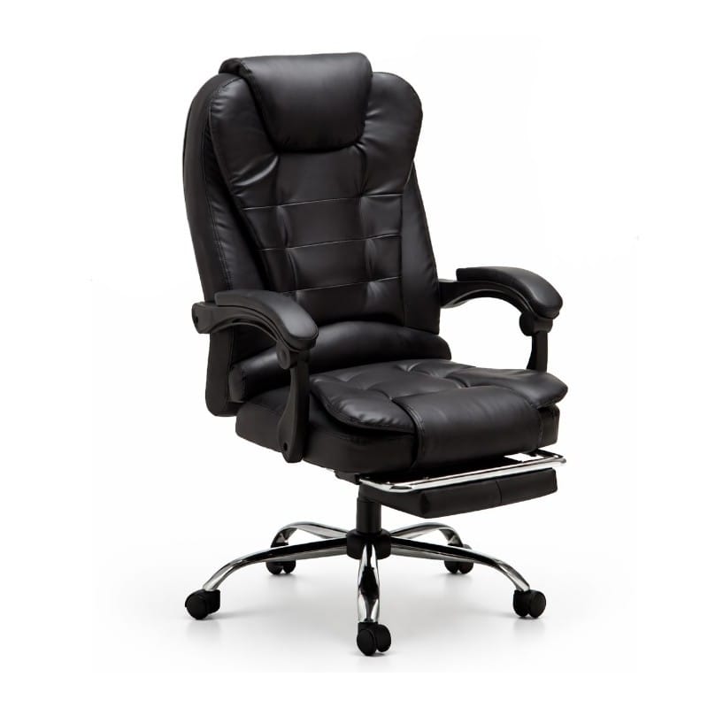 Fotel biurowy obrotowy BOSS z podnóżkiem - czarny eco SKÓRA KO22CZ