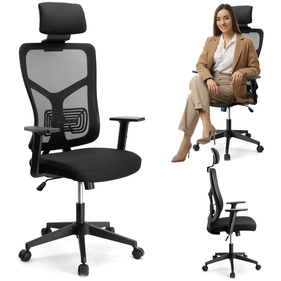 Fotel biurowy regulowany KALISTO czarny⭐Ergonomiczny design z oddychającym oparciem⭐Funkcja TILT do odchylania i kołysania⭐Regulowane podłokietniki⭐Ciche, gumowane kółka chroniące podłogę⭐Zakup od producenta Jeśli szukasz fotela, który połączy nowoczesny design, ergonomię i wysoką jakość wykonania, fotel biurowy KALISTO marki eHokery to doskonały wybór. Zaprojektowany z myślą o komforcie i zdrowiu użytkownika, sprawdzi się zarówno w biurze, jak i w domowym gabinecie. Fotel LINOS wyróżnia się szeregiem funkcji, które sprawiają, że wielogodzinna praca przy biurku staje się bardziej komfortowa i mniej obciążająca dla kręgosłupa. Poznaj jego zalety:✅ Regulacja wysokości: Dzięki płynnemu mechanizmowi regulacji wysokości dopasujesz fotel do swojego wzrostu i wysokości biurka, co pozytywnie wpłynie na Twoją postawę.✅ Obrót o 360 stopni: Swobodna rotacja ułatwia dostęp do różnych obszarów roboczych bez konieczności wstawania, oszczędzając Twój czas i energię.✅ Regulowane podłokietniki: Możliwość dostosowania wysokości podłokietników zapewnia wsparcie dla ramion i barków, co redukuje napięcie mięśni podczas długotrwałego siedzenia.✅ Mechanizm TILT: Opcja kołysania i odchylania oparcia pozwala na chwilę relaksu i zmianę pozycji, co wspiera dynamiczne siedzenie i przeciwdziała zmęczeniu.✅ Oddychające oparcie z siatki: Wytrzymała, elastyczna siatka dopasowuje się do kształtu pleców i gwarantuje odpowiednią cyrkulację powietrza, idealną na długie godziny pracy w cieplejsze dni.✅ Komfortowe siedzisko: Wypełnione miękką pianką siedzisko dba o wygodę nawet podczas najbardziej wymagających dni w pracy.✅ Stabilna konstrukcja: Solidna, pięcioramienna podstawa gwarantuje bezpieczeństwo i stabilność w każdej sytuacji.✅ Ciche kółka: Gumowane kółka zapewniają cichą i płynną mobilność, jednocześnie chroniąc podłogę przed zarysowaniami. Fotel biurowy KALISTO to inwestycja w komfort, zdrowie i stylowe wyposażenie Twojego miejsca pracy. Wybierz jakość, której możesz zaufać, i ciesz się ergonomicznym wsparciem na co dzień!Specyfikacja technicznaKolor: CzarnyErgonomiczne profilowane siedzisko i oparcieSiedzisko i oparcie wykonane z elastycznej siatkiPłynna regulacja wysokości siedziska: TakPłynna regulacja wysokości zagłówka: TakRegulowane podłokietniki wykonane z tworzywa sztucznegoWbudowane podparcie odcinka lędźwiowego: TakMaksymalne obciążenie: 120 kgSiedzisko wypełnione specjalną piankąSolidna i stabilna 5 ramienna podstawa na kółkach WymiaryWysokość fotela: 121-131cmSzerokość fotela: 66 cmGłębokość fotela: 60 cmWysokość do siedziska 38-48 cmSzerokość siedziska: 50 cmGłębokość siedziska: 50 cmGrubość siedziska: 8 cmSzerokość oparcia: 51 cmWysokość podłokietnika: 26,5-35 cmDługość podłokietników: 24 cmSzerokość podłokietników: 8,5 cmŚrednica podstawy: 66 cm Informacje dodatkowePrzedstawione kolory należy traktować poglądowo - mogą odbiegać od rzeczywistych ze względu na różne ustawienia monitorów oraz proces obróbki zdjęć. Rzeczywiste wymiary mogą się różnić od podanych wyżej. Tolerancja błędów może wynosić +/- 5%. Marka:eHokery Kod EAN produktu:5905523064117Kolor:czarnyMateriał podstawy:metal, tworzywoFunkcje dodatkowe:regulacja wysokości, podłokietników, tiltPrzeznaczenie:biuro, firma, domMaksymalne obciążenie:120 kg