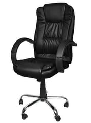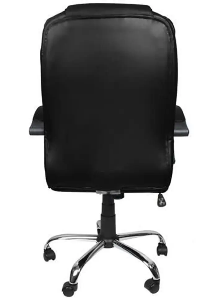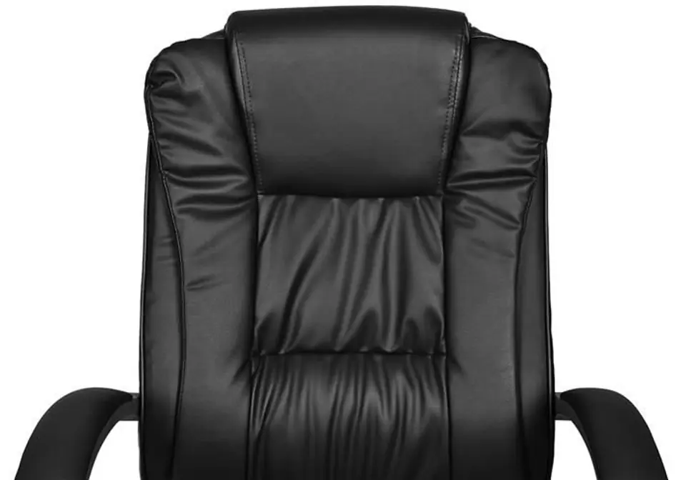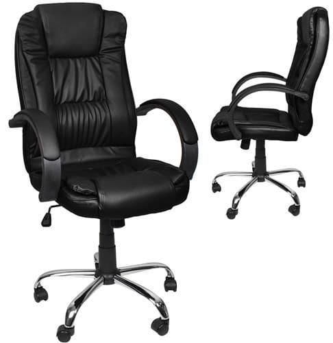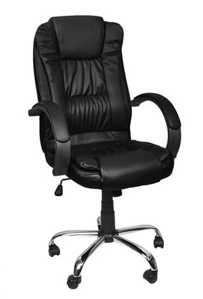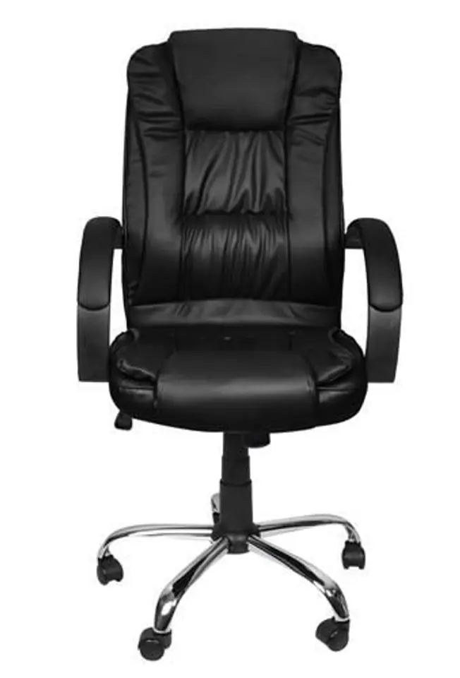 Fotel biurowy idealnie dopasowujący się do sylwetki siedzącego, obity miękką eko skórą. Wyprofilowany tak, aby zapewnić maksymalną wygodę, nawet przy wielogodzinnym siedzeniu. Wysoki, wbudowany zagłówek i odpowiednie wyprofilowanie gwarantuje funkcjonalność i oparcie dla głowy, a szerokie siedzisko pozwoli na wielogodzinną pracę. Podłokietniki są odpowiednio ukształtowane, co podnosi wygodę użytkowania, a także obciążenie kręgosłupa. 5 - ramienna podstawa - krzyżak z podwójnymi kółkami łatwo się obraca i zapewnia stabilne przemieszczanie.