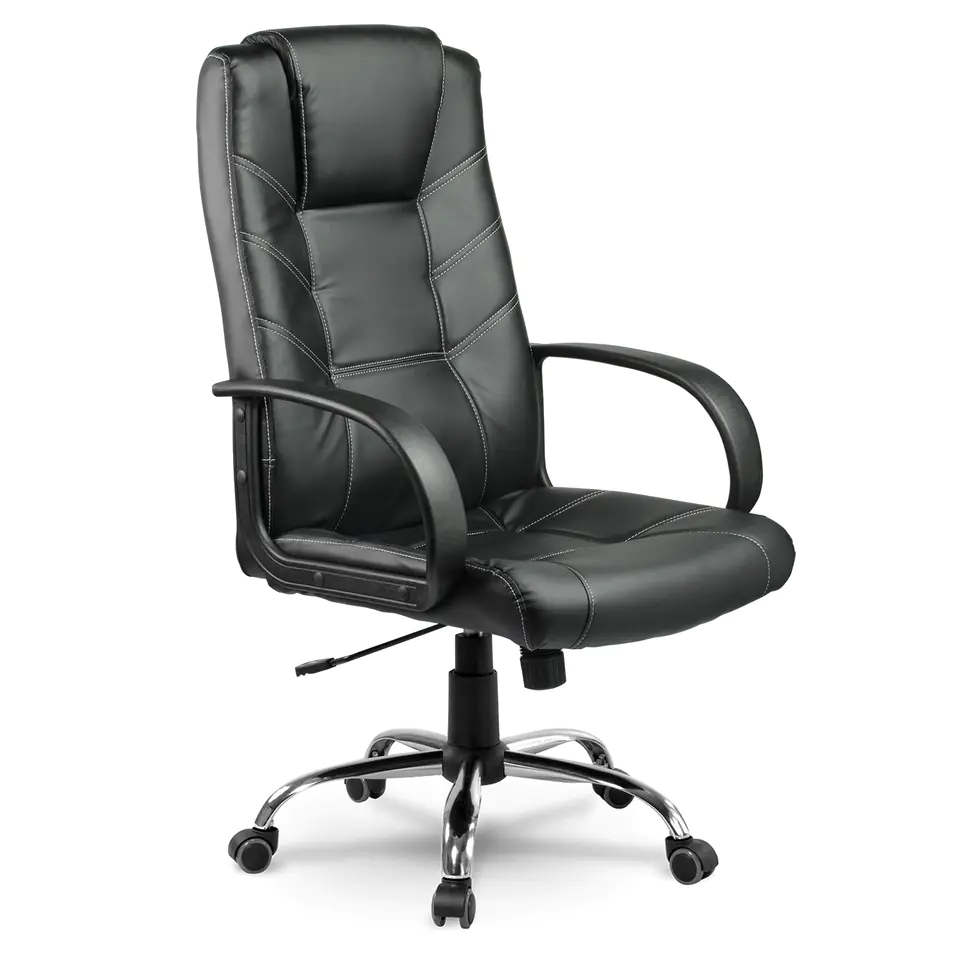 Fotel wyróżnia się lekkością projektu, jednocześnie zachowując elegancki i profesjonalny charakter. Projektanci dobrali dla Ciebie stonowany, czarny odcień przyjemnej w dotyku tapicerki z ekoskóry. Kolor przyjemnie kontrastuje z białym szwem, dodającym fotelowi dynamiki.
