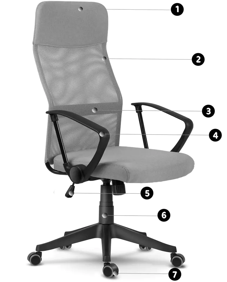 - wysokie, ergonomiczne oparcie z mikrosiatki,