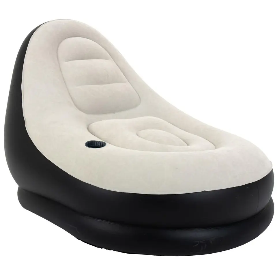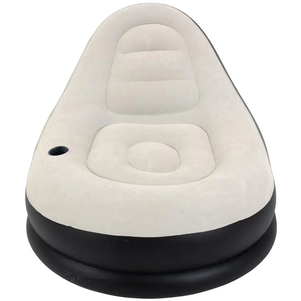 Konstrukcja fotela i miękki dmuchany podnóżek zapewnią Ci relaks w każdych warunkach, dodatkowo otwór na napój zapewni Ci stały dostęp do ulubionego napoju.