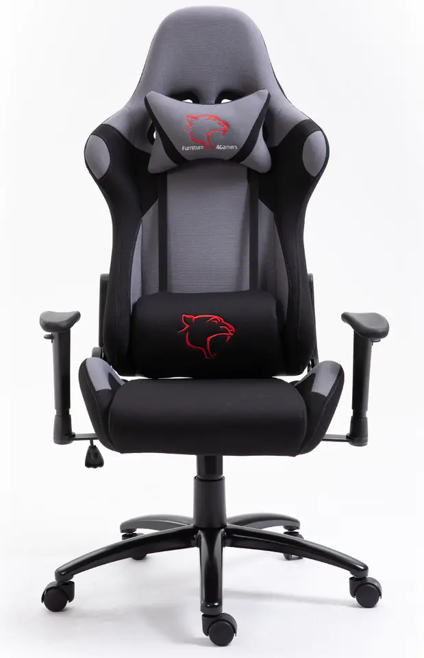 Grafitowy fotel gamingowy dedykowany jest graczom komputerowym oraz wszystkim tym osobom, które dużo czasu spędzają przy komputerze. Specjalne wyprofilowanie oparcie i siedziska fotela sprawia, że nawet długie w nim siedzenie nie obciąża kręgosłupa i nie powoduje żadnego dyskomfortu, na przykład w postaci bólu karku. Fotel posiada mocną metalową ramę oraz rozwiązania podnoszące komfort jego użytkowania, takie jak mechanizm odchylania oparcia fotela w zakresie od 90 do 180 stopni, nierysujące podłogi i umożliwiające ciche przesuwanie mebla sylikonowo-kauczukowe kółka oraz regulowane podłokietniki. Wygodę korzystania z fotela dodatkowo zwiększa praktyczny podnośnik gazowy, którym można regulować wysokość siedziska, oraz dodawane do mebla poduszki, które stanowią uzupełniające podparcie kręgosłupa. Fotel gamingowy posiada materiałową tapicerkę w kolorze eleganckiego grafitu, wykonaną z wytrzymałej i przepuszczającej powietrze tkaniny o fakturze siatkowej. Do wypełnienia siedziska i oparcia fotela producent zastosował elastyczną i trwałą gąbkę, która nie odkształca się nawet po długim użytkowaniu i zapewnia optymalną wygodę.