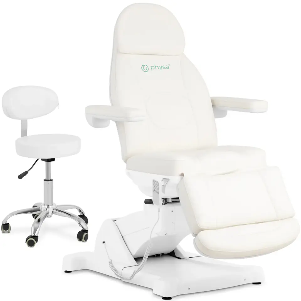 Kod producenta: 10040731Fotel kosmetyczny marki PHYSA zapewnia maksymalny relaks w pozycji leżącej lub siedzącej. Pozwala na wygodne przeprowadzanie zabiegów kosmetycznych. Nadaje się także do użytku w studiach stylizacji, tatuażu i piercingu, w obiektach SPA Wellness oraz jako stół do masażu. Wyposażono go w liczne funkcje. Silniki umożliwiają łatwą obsługę za pomocą przewodowego (3 m) sterowania ręcznego. Wybierzesz różne ustawienia wysokości w zakresie 600 - 900 mm. Ponadto możesz dostosować kąty oparcia (0-90deg;), podłokietników (0-180deg;) i podnóżka (0-90deg;) do danego zabiegu i klienta. Miękka tapicerka w połączeniu z najwyższej klasy wodoodpornym i olejoodpornym pokryciem ze skóry syntetycznej, którą można łatwo wyczyścić, zapewnia wysoki komfort i nienaganną higienę. Fotel posiada także funkcję leżenia. Łóżko kosmetyczne posiada przemyślaną konstrukcja, podstawę Ø480 mm wykonaną z metalu malowanego proszkowo i wysokiej jakości materiałów. Maksymalny udźwig wynosi 150 kg. Sprzęt zachwyca niezwykłą trwałością oraz prostym i klasycznym wyglądem.Krzesło kosmetyczne WELLS PISTACHIO z regulacją wysokości oferuje wiele przydatnych rozwiązań. Pięć lekkobieżnych kółek pozwala z łatwością je przestawić. Wysokość krzesła można ustawić w zakresie 540 - 720 mm za pomocą sprężyny gazowej. W razie potrzeby krzesło można obrócić o 360deg; wokół własnej osi. Na tapicerowanym siedzisku o średnicy 350 mm możesz wygodnie siedzieć nawet przez długi czas. Oparcie, które również jest tapicerowane, zapewnia jeszcze większy komfort. Krzesło obrotowe kosmetyczne imponuje solidną konstrukcją, którą można obciążyć do 150 kg. Zastosowane materiały, takie jak syntetyczna skóra PVC i stop aluminium, są łatwe do czyszczenia. Dodatkowo tapicerka siedziska jest odporna na kurz i wodę, co oznacza, że podczas pracy taboret kosmetyczny brudzi się w niewielkim stopniu.Cechy produktu: