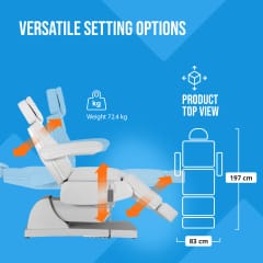 - - Przewodowy pilot umożliwia wygodną i szybką regulację poszczególnych elementów łóżka kosmetycznego.