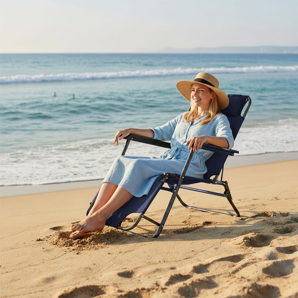 Fotel Leżak LEON granatowyPrzeznaczenie: ogród, plaża, kemping | Kolory: granatowy Wygodny i bardzo wytrzymały leżak turystyczny. Leon rozkłada się do dwóch pozycji- półleżącej oraz leżącej. Doskonale pełni więc zarówno funkcję fotela, jak i turystycznego łóżka. Szerokie podłokietniki i miękka poduszka zapewniają komfortowy wypoczynek. Leżak Leon powstał z bardzo mocnych, stalowych profili oraz trwałego materiału Oxford600D, co zapewnia trwałość na wiele sezonów. Mimo tego leżak jest bardzo lekki i łatwo go przetransportować na plażę czy inne miejsce. ➡️Praktyczny i uniwersalny✅Solidna stalowa konstrukcja - stelaż leżaka Leon został wykonany ze stali malowanej proszkowo, co zapewnia mu wyjątkową trwałość i zwiększoną odporność. Technologia malowania proszkowego znacząco podnosi estetykę wykończenia, czyniąc go eleganckim dodatkiem do każdej przestrzeni zewnętrznej.✅Regulacja pozycji - Leżak ten został zaprojektowany z myślą o wszechstronności użytkowania, oferując możliwość wyboru między pozycją leżącą jako leżanka oraz pozycją siedzącą, funkcjonując jako fotel. Ta funkcjonalność nie tylko zwiększa komfort użytkowania, ale również pozwala na łatwe dostosowanie mebla do różnych potrzeb i okoliczności.✅Lekki i kompaktowy - Leżak jest lekki i ma kompaktowe wymiary po złożeniu, dzięki czemu zajmuje mało miejsca i jest łatwy w przenoszeniu.✅Uniwersalny - Leżak Leon charakteryzuje się uniwersalnością, co czyni go idealnym wyborem do różnorodnych przestrzeni zewnętrznych, takich jak ogród, balkon, taras, plaża czy też miejsce na kempingu. Jego wszechstronny design oraz funkcjonalność sprawiają, że doskonale komponuje się z każdym otoczeniem, oferując komfort i styl tam, gdzie są najbardziej potrzebne. ➡️Cechy produktuSolidny stelażMateriał Oxford 600D - szybkoschnący, wodoodporny, miły w dotyku.Stelaż ze stali malowanej proszkowoŁatwy w złożeniu i rozłożeniuDoskonale pasuje zarówno na działkę, plażę jak i do ogroduMax. obciążenie: 100 kgWaga leżaka ok. 5 kg ➡️WymiaryZłożone:wysokość 15 cmszerokość 65 cmdługość 88 cmRozłożone:szerokość 61 cmsiedzisko 40 x 47 cmoparcie 47 x 70 cmPozycja siedząca:wysokość 80 cmszerokość 61 cmdługość 120 cmPozycja leżąca:wysokość 25 cmszerokość 61 cmdługość 150 cmInformacje dodatkowePrzedstawione kolory należy traktować poglądowo - mogą odbiegać od rzeczywistych ze względu na różne ustawienia monitorów oraz proces obróbki zdjęć. Rzeczywiste wymiary mogą się różnić od podanych wyżej. Tolerancja błędów może wynosić +/- 5%. Marka:eHokeryKod produktu:062953MGKod EAN:5905523062953Kolor:granatoweMateriał: Oxford 600DMaxymalne obciążenie:100 kgStelaż:stal malowana proszkowoDługość całkowita w pozycji leżącej:150 cm