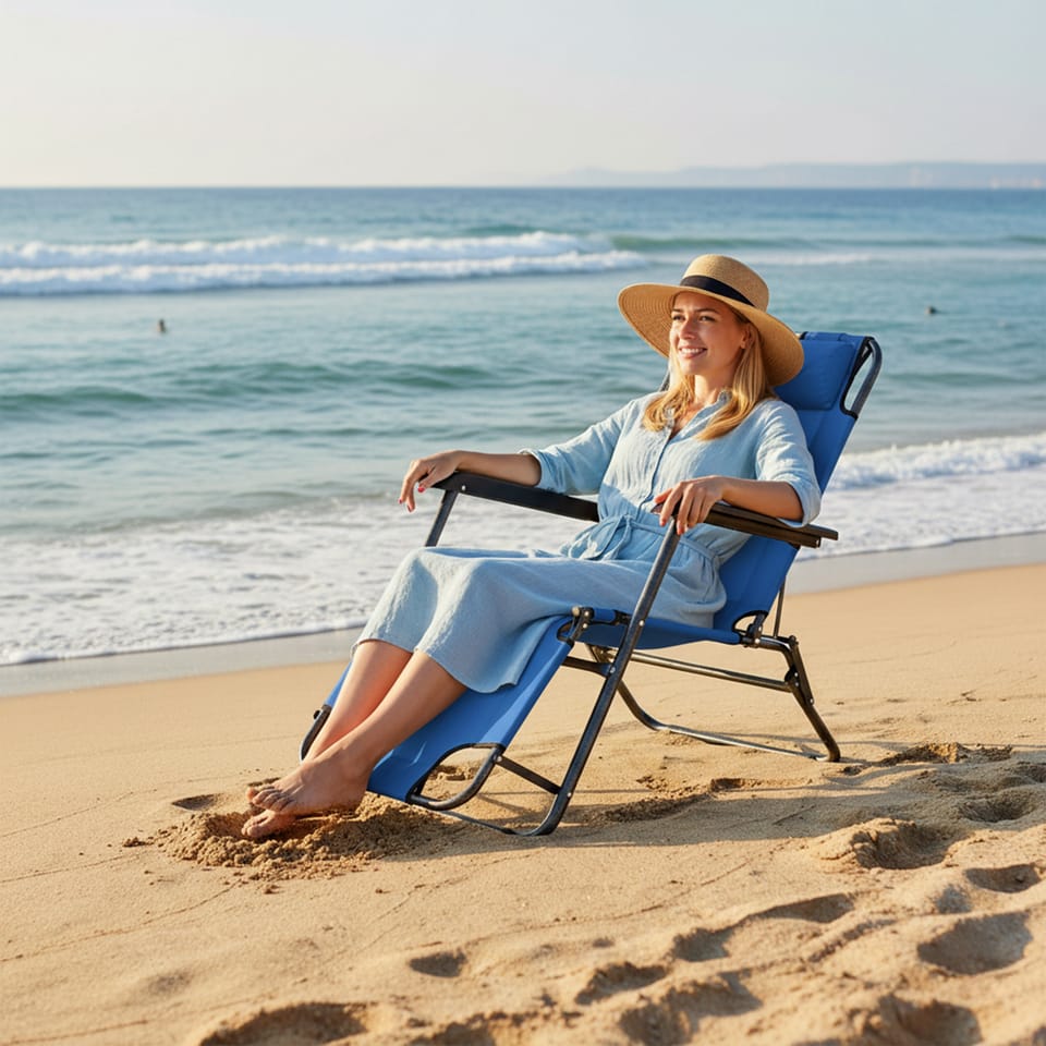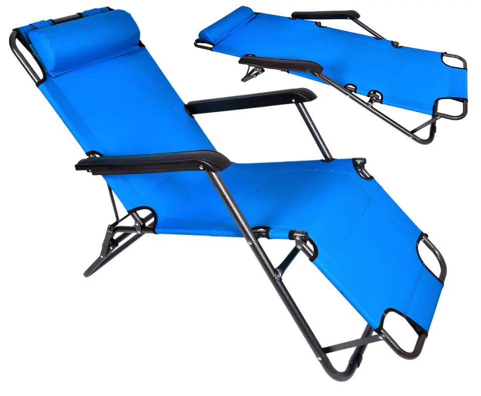 Fotel Leżak LEON niebieskiPrzeznaczenie: ogród, plaża, kemping | Kolory: niebieski⭐Mocny materiał Oxford 600D⭐Długie podłokietniki⭐Stalowa konstrukcja⭐Zakup od producentaWygodny i bardzo wytrzymały leżak turystyczny. Leon rozkłada się do dwóch pozycji- półleżącej oraz leżącej. Doskonale pełni więc zarówno funkcję fotela, jak i turystycznego łóżka. Szerokie podłokietniki i miękka poduszka zapewniają komfortowy wypoczynek. Leżak Leon powstał z bardzo mocnych, stalowych profili oraz trwałego materiału Oxford600D, co zapewnia trwałość na wiele sezonów. Mimo tego leżak jest bardzo lekki i łatwo go przetransportować na plażę czy inne miejsce. ➡️Praktyczny i uniwersalny✅Solidna stalowa konstrukcja - stelaż leżaka Leon został wykonany ze stali malowanej proszkowo, co zapewnia mu wyjątkową trwałość i zwiększoną odporność. Technologia malowania proszkowego znacząco podnosi estetykę wykończenia, czyniąc go eleganckim dodatkiem do każdej przestrzeni zewnętrznej.✅Regulacja pozycji - Leżak ten został zaprojektowany z myślą o wszechstronności użytkowania, oferując możliwość wyboru między pozycją leżącą jako leżanka oraz pozycją siedzącą, funkcjonując jako fotel. Ta funkcjonalność nie tylko zwiększa komfort użytkowania, ale również pozwala na łatwe dostosowanie mebla do różnych potrzeb i okoliczności.✅Lekki i kompaktowy - Leżak jest lekki i ma kompaktowe wymiary po złożeniu, dzięki czemu zajmuje mało miejsca i jest łatwy w przenoszeniu.✅Uniwersalny - Leżak Leon charakteryzuje się uniwersalnością, co czyni go idealnym wyborem do różnorodnych przestrzeni zewnętrznych, takich jak ogród, balkon, taras, plaża czy też miejsce na kempingu. Jego wszechstronny design oraz funkcjonalność sprawiają, że doskonale komponuje się z każdym otoczeniem, oferując komfort i styl tam, gdzie są najbardziej potrzebne. Cechy produktuSolidny stelażMateriał Oxford 600D - szybkoschnący, wodoodporny, miły w dotyku.Stelaż ze stali malowanej proszkowoŁatwy w złożeniu i rozłożeniuDoskonale pasuje zarówno na działkę, plażę jak i do ogroduMaks. obciążenie: 100 kgWaga leżaka ok. 5 kg WymiaryZłożone:wysokość 15 cmszerokość 65 cmdługość 88 cmRozłożone:szerokość 61 cmsiedzisko 40 x 47 cmoparcie 47 x 70 cmPozycja siedząca:wysokość 80 cmszerokość 61 cmdługość 120 cmPozycja leżąca:wysokość 25 cmszerokość 61 cmdługość 150 cmInformacje dodatkowePrzedstawione kolory należy traktować poglądowo - mogą odbiegać od rzeczywistych ze względu na różne ustawienia monitorów oraz proces obróbki zdjęć. Rzeczywiste wymiary mogą się różnić od podanych wyżej. Tolerancja błędów może wynosić +/- 5%. Marka:eHokeryKod produktu:062960MGKod EAN:5905523062960Kolor:niebieskiMateriał: Oxford 600DMaksymalne obciążenie:100 kgStelaż:stal malowana proszkowoDługość całkowita w pozycji leżącej:150 cm