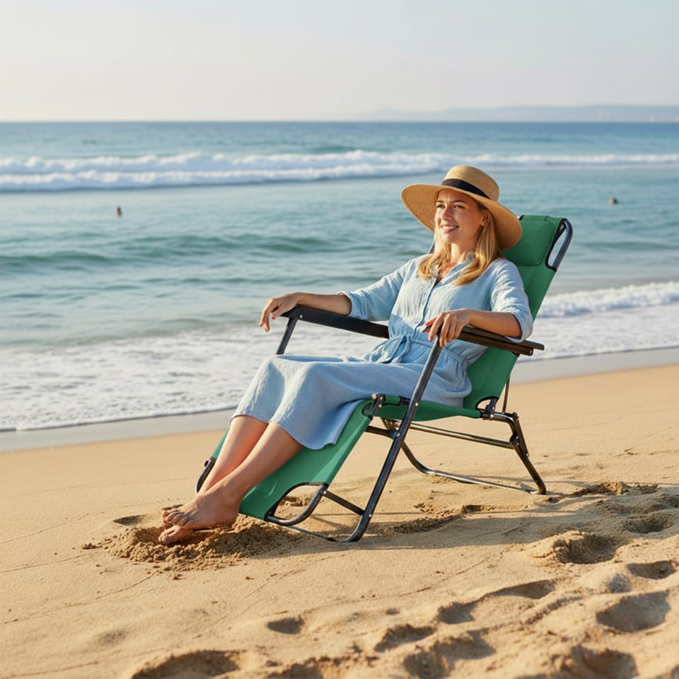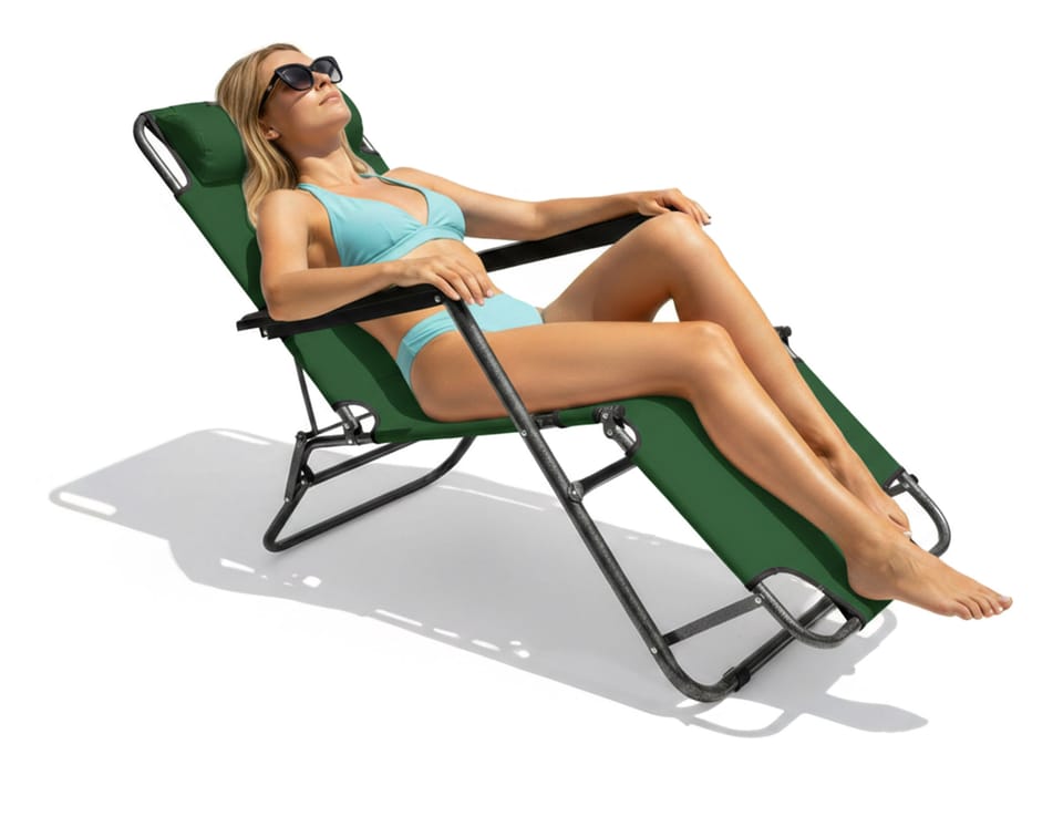 Fotel Leżak LEON zielonyPrzeznaczenie: ogród, plaża, kemping | Kolory: zielony⭐Mocny materiał Oxford 600D⭐Długie podłokietniki⭐Stalowa konstrukcja⭐Zakup od producentaWygodny i bardzo wytrzymały leżak turystyczny. Leon rozkłada się do dwóch pozycji- półleżącej oraz leżącej. Doskonale pełni więc zarówno funkcję fotela, jak i turystycznego łóżka. Szerokie podłokietniki i miękka poduszka zapewniają komfortowy wypoczynek. Leżak Leon powstał z bardzo mocnych, stalowych profili oraz trwałego materiału Oxford600D, co zapewnia trwałość na wiele sezonów. Mimo tego leżak jest bardzo lekki i łatwo go przetransportować na plażę czy inne miejsce. ➡️Praktyczny i uniwersalny✅Solidna stalowa konstrukcja - stelaż leżaka Leon został wykonany ze stali malowanej proszkowo, co zapewnia mu wyjątkową trwałość i zwiększoną odporność. Technologia malowania proszkowego znacząco podnosi estetykę wykończenia, czyniąc go eleganckim dodatkiem do każdej przestrzeni zewnętrznej.✅Regulacja pozycji - Leżak ten został zaprojektowany z myślą o wszechstronności użytkowania, oferując możliwość wyboru między pozycją leżącą jako leżanka oraz pozycją siedzącą, funkcjonując jako fotel. Ta funkcjonalność nie tylko zwiększa komfort użytkowania, ale również pozwala na łatwe dostosowanie mebla do różnych potrzeb i okoliczności.✅Lekki i kompaktowy - Leżak jest lekki i ma kompaktowe wymiary po złożeniu, dzięki czemu zajmuje mało miejsca i jest łatwy w przenoszeniu.✅Uniwersalny - Leżak Leon charakteryzuje się uniwersalnością, co czyni go idealnym wyborem do różnorodnych przestrzeni zewnętrznych, takich jak ogród, balkon, taras, plaża czy też miejsce na kempingu. Jego wszechstronny design oraz funkcjonalność sprawiają, że doskonale komponuje się z każdym otoczeniem, oferując komfort i styl tam, gdzie są najbardziej potrzebne. ➡️Cechy produktuSolidny stelażMateriał Oxford 600D - szybkoschnący, wodoodporny, miły w dotyku.Stelaż ze stali malowanej proszkowoŁatwy w złożeniu i rozłożeniuDoskonale pasuje zarówno na działkę, plażę jak i do ogroduMax. obciążenie: 100 kgWaga leżaka ok. 5kg Wymiary➡️Złożone:wysokość 15 cmszerokość 65 cmdługość 88 cmRozłożone:szerokość 61 cmsiedzisko 40 x 47 cmoparcie 47 x 70 cmPozycja siedząca:wysokość 80 cmszerokość 61 cmdługość 120 cmPozycja leżąca:wysokość 25 cmszerokość 61 cmdługość 150 cmInformacje dodatkowePrzedstawione kolory należy traktować poglądowo - mogą odbiegać od rzeczywistych ze względu na różne ustawienia monitorów oraz proces obróbki zdjęć. Rzeczywiste wymiary mogą się różnić od podanych wyżej. Tolerancja błędów może wynosić +/- 5%. Marka:eHokeryKod produktu:062984MGKod EAN:5905523062984Kolor:zielonyMateriał: Oxford 600DMaxymalne obciążenie:100 kgStelaż:stal malowana proszkowoDługość całkowita w pozycji leżącej:150 cm