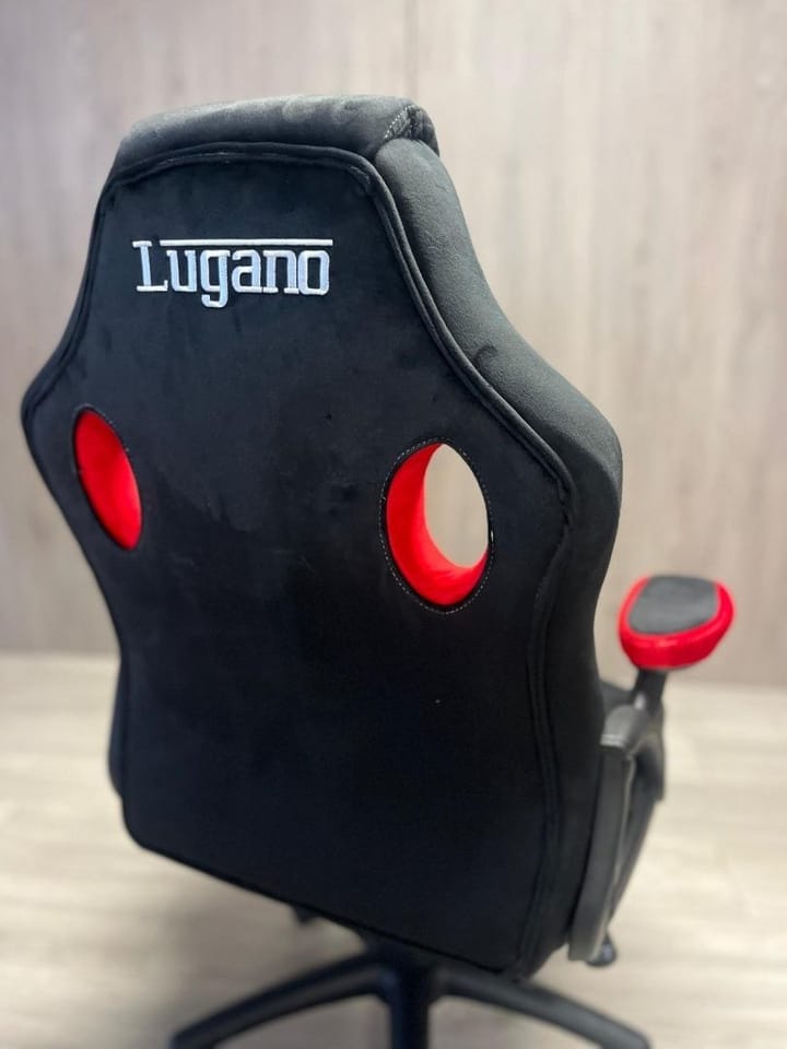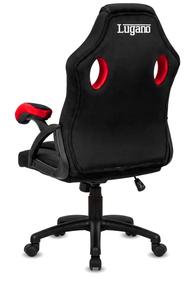 Fotel obrotowy, dla gracza, do biurka - CARRERA BLACK + RED ALCANTARA rozmiar M