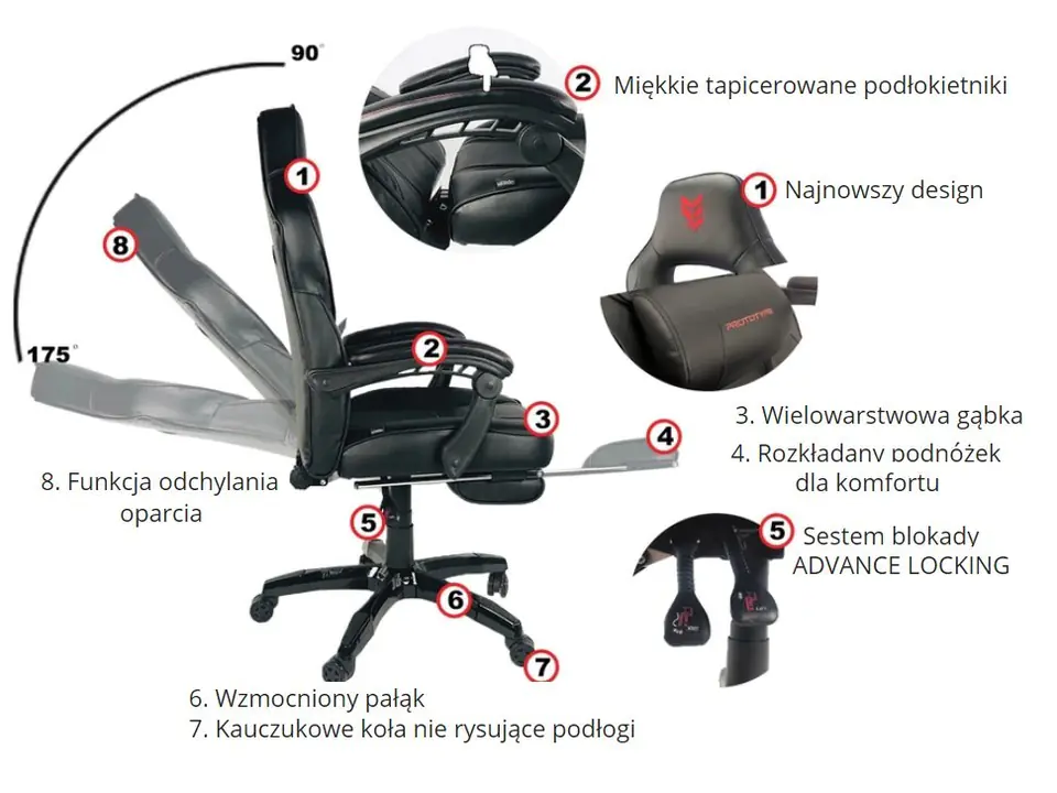 - Tapicerowane podłokietniki z regulacją