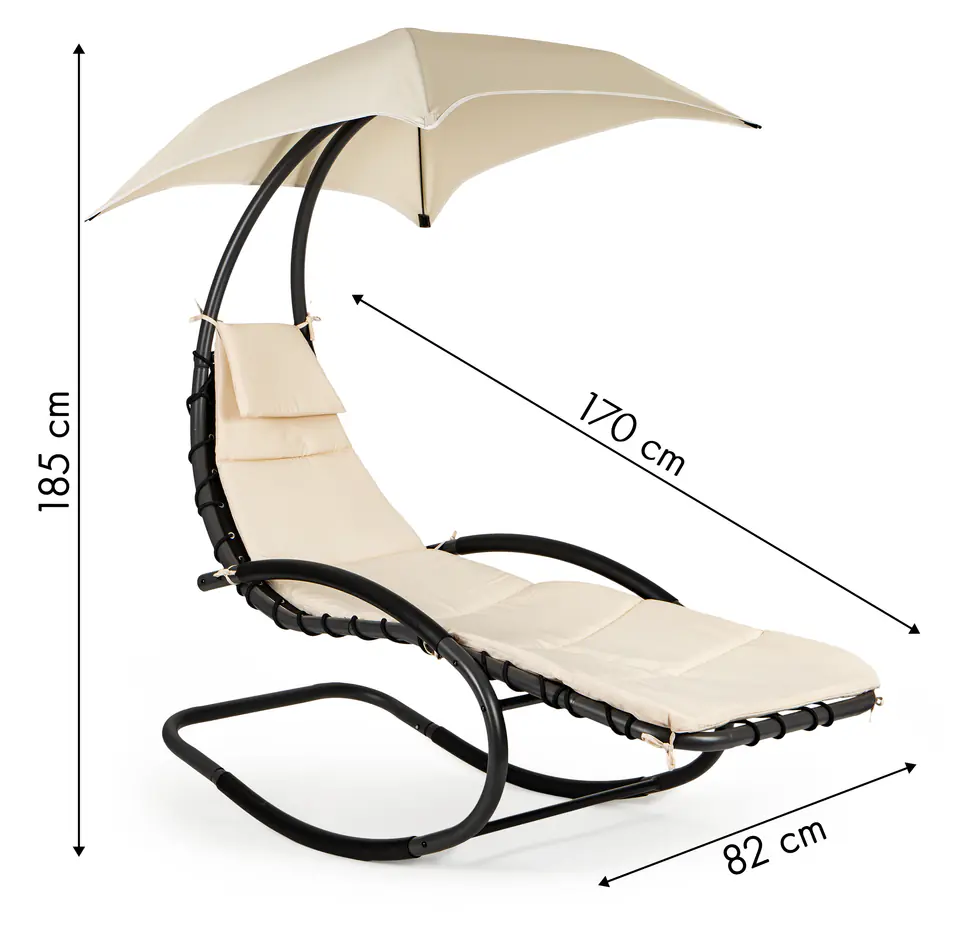 Duży regulowany daszek zapewni przyjemny cień podczas upalnych dni, a lekkie bujanie dodatkowo umili nam czas na spędzony na zewnątrz.