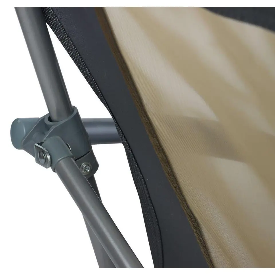 - posiada szybki i łatwy w obsłudze system rozkładania i składaniawygodne podłokietniki pokryte miękką gumą pozwolą przyjąć wygodna pozycjęstabilny i wytrzymały stelaż wykonany ze stalowych rurek sprawdzi się przez wiele sezonówsiedzenie wykonano z wytrzymałego i odpornego na różne warunki atmosferyczne materiału Oxford 600Ddołączony pokrowiec z długą rączką ułatwi zabranie go ze sobą w dowolne miejsceszerokie płaskie zakończenia nóżek zabezpieczają przed zapadaniem się w piasku lub ziemispecjalna blokada zabezpiecza fotel przed złożeniem się