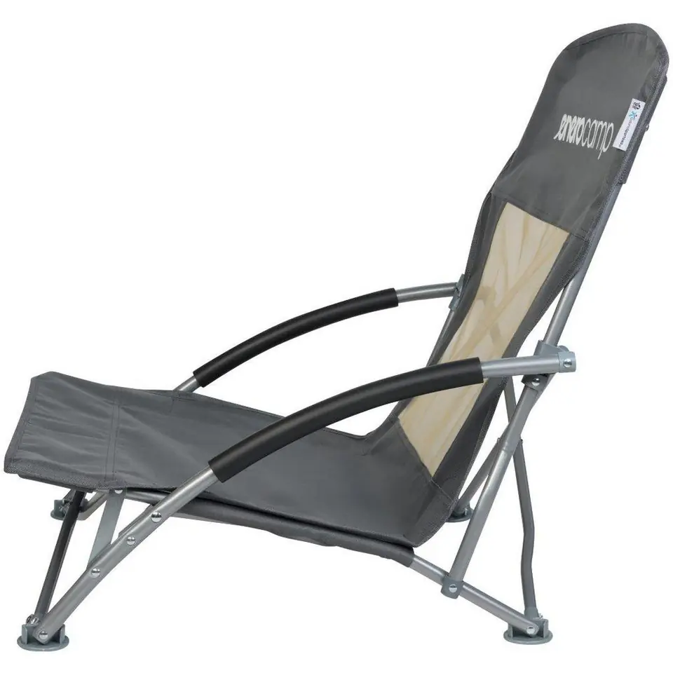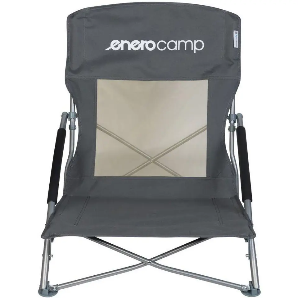 Parametry- Wymiary rozłożonego krzesła ok.: 55 x 58 x 64 (szer. z podłokietnikami x wys. x gł.)Wymiary oparcia ok.: 56 x 52 cm (wys. x szer.)Wymiary siedziska ok.: 42 x 52 cm (gł. x szer. )- wysokość podłokietników od ziemi: od 16 do 28 cm- wysokość siedziska od ziemi (siedzisko obniża się): 18 - 10 cm- szerokość mierzona z podłokietnikami: 55 cm- szerokość mierzona od wewnętrznej strony stelaża: 52 cm- szerokość rozstaw nóżek: 55 x 50 cm (szer. x gł.)cmMaksymalna waga użytkownika do 100 kgWymiary złożonego krzesła ok.: 75 x 20 x 10 cm (dł. x szer. x wys.)Wymiary krzesła w pokrowcu (opakowania) ok.: 75 x 18 x 12 cm (dł. x szer. x wys.)Kąt oparcia: 120 stopniWaga netto ok: 2 kgWaga brutto ok: 2,180 kgRama stalowa o średnicy: 18 mm i grubości 0,8 mmPodłokietnik z miękką pianką o średnicy: 26 mmMateriał: Oxford 600D siedzisko, stal stelażKolor: SzaryMarka: Enero Camp