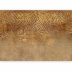 Fototapeta - Abstrakcyjna natura w beżu - kompozycja ze złotymi egzotycznymi liśćmi rozmiar 450x315, wykończenie Premium