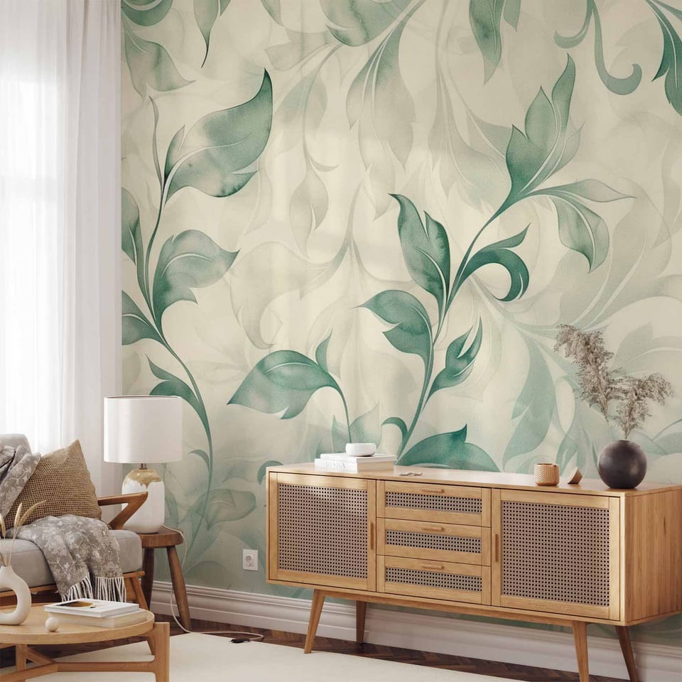 Fototapeta - Akwarelowy motyw botaniczny delikatne zielono-beżowe listki rozmiar 500x350, wykończenie Standard