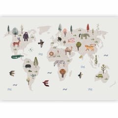 Fototapeta - Beżowy świat - kontynenty ze zwierzątkami w stonowanej kolorystyce rozmiar 250x175, wykończenie Wodoodporna
