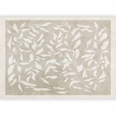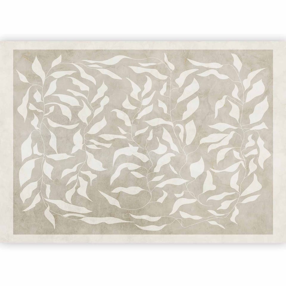 Fototapeta - Białe liście - abstrakcyjny motyw roślinny na beżowym tle z ramką rozmiar 150x105, wykończenie Wodoodporna
