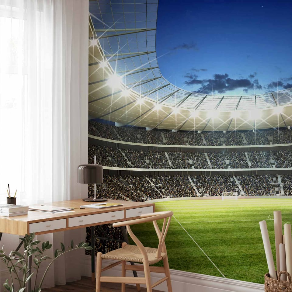 Fototapeta - Boisko piłarskie - oświetlony stadion z przepełnionymi trybunami rozmiar 450x315, wykończenie Standard