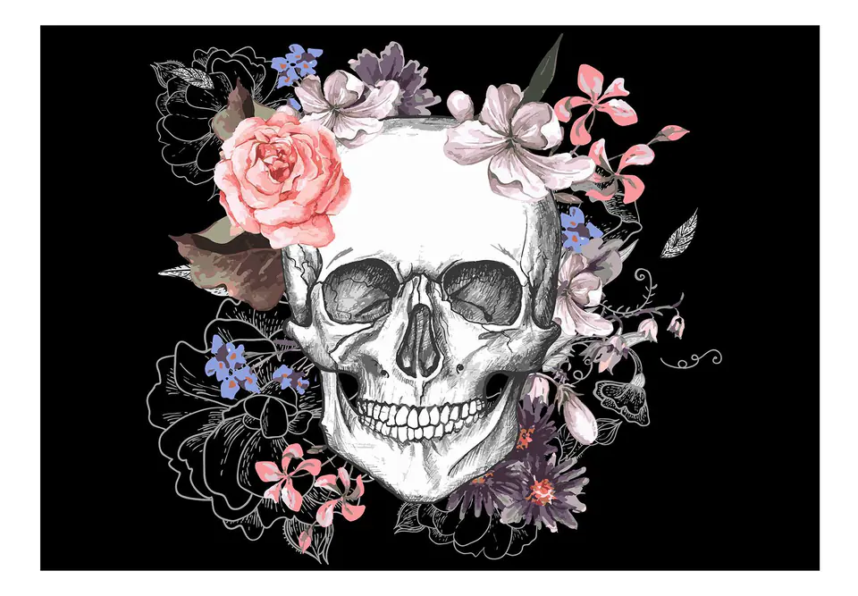 Fototapeta - Czaszka i kwiaty rozmiar 150x105, wykończenie Premium