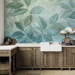 Fototapeta - Duże liście w odcieniach zielono-miętowych: motyw botaniczny rozmiar 250x175, wykończenie Wodoodporna