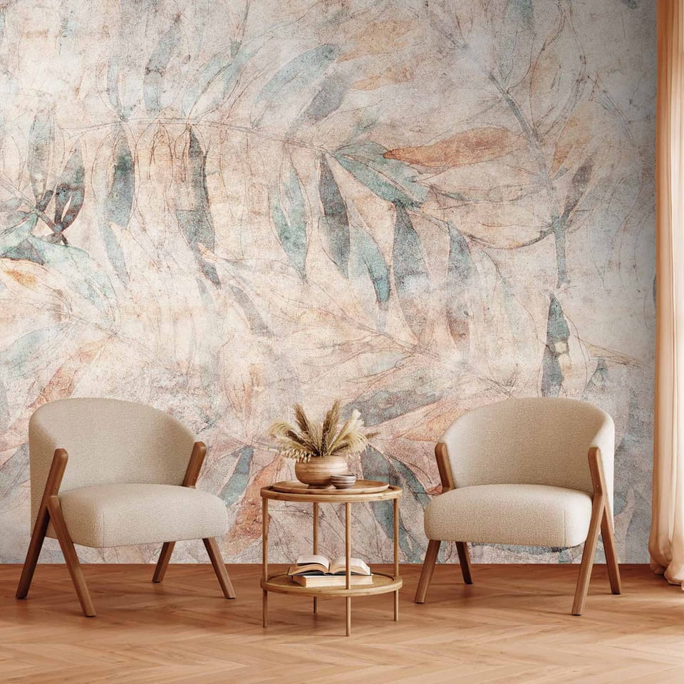 Fototapeta - Greckie laury - wyblakła kompozycja z liśćmi na beżowym tle w desenie rozmiar 400x280, wykończenie Premium