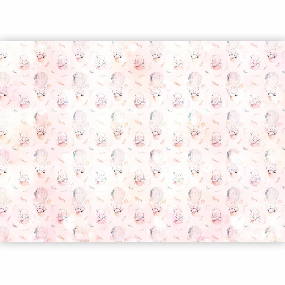 Fototapeta - Jednolity deseń z piórami - zające w koszyku i w balonie dla dzieci rozmiar 150x105, wykończenie Wodoodporna