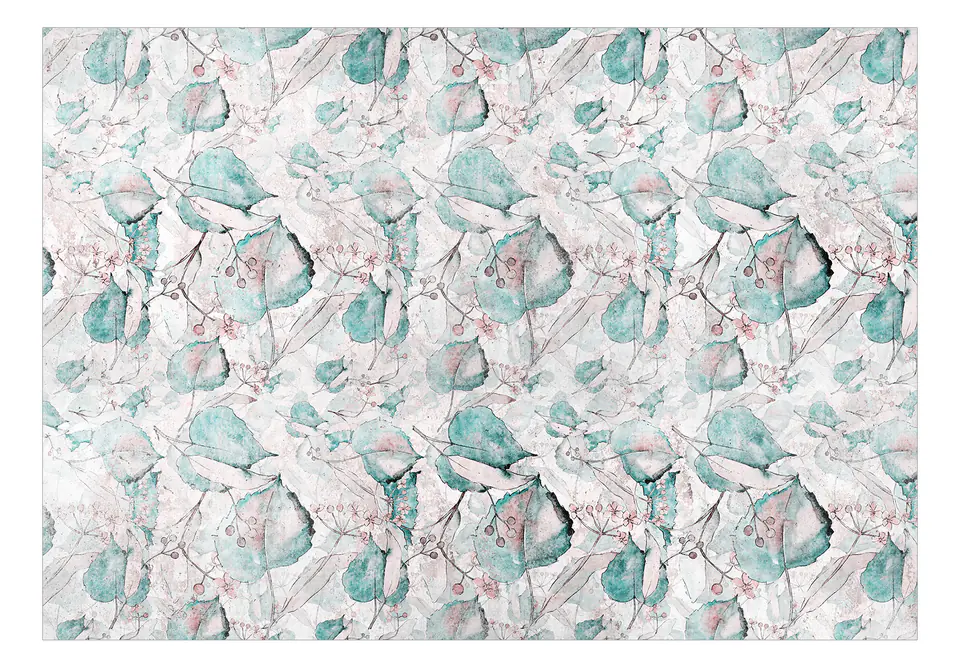 Fototapeta - Jesienne pamiątki - deseń z roślinnym motywem z turkusowymi liśćmi rozmiar 100x70, wykończenie Premium
