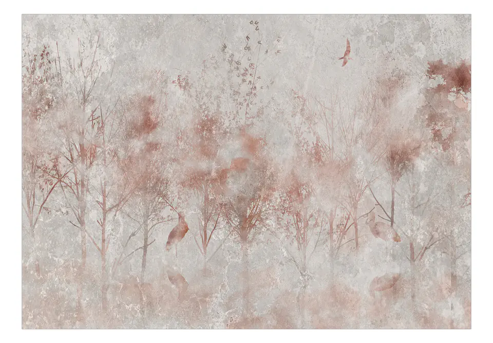 Fototapeta - Jesienny pejzaż - abstrakcja z drzewami i ptakami na tle z teksturą rozmiar 400x280, wykończenie Premium