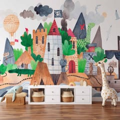 Fototapeta - Kolorowa wyspa skarbów z zamkiem - statek piratów na morzu dla dzieci rozmiar 200x140, wykończenie Premium