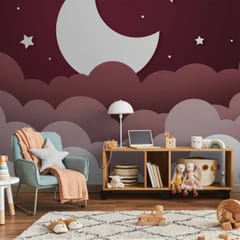 Fototapeta - Księżycowy sen - chmury na bordowym niebie z gwiazdami dla dzieci rozmiar 250x175, wykończenie Standard