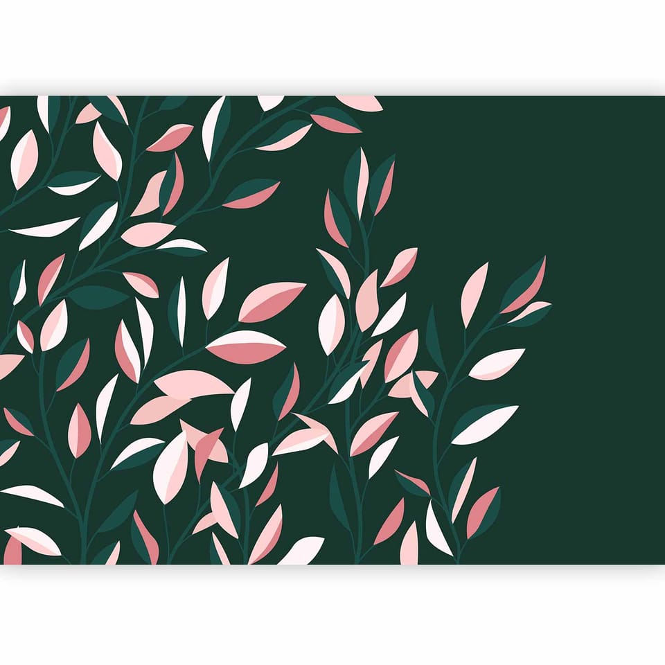 Fototapeta - Kwitnące pnącze - minimalistyczne pnące się liście na zielonym tle rozmiar 100x70, wykończenie Premium