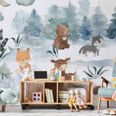 Fototapeta - Leśne zabawy - zwierzątka w lesie malowane akwarelą rozmiar 150x105, wykończenie Wodoodporna