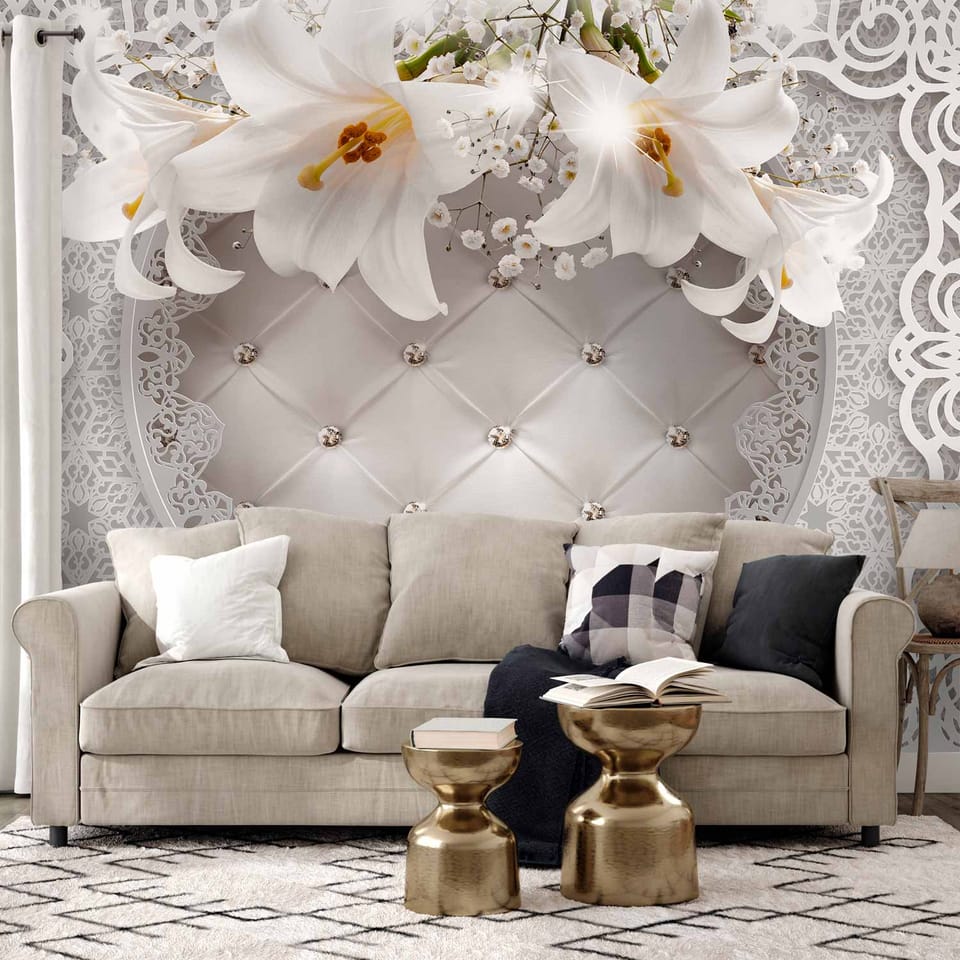 Fototapeta - Lilie i pikowane tło rozmiar 441x315, wykończenie Samoprzylepna