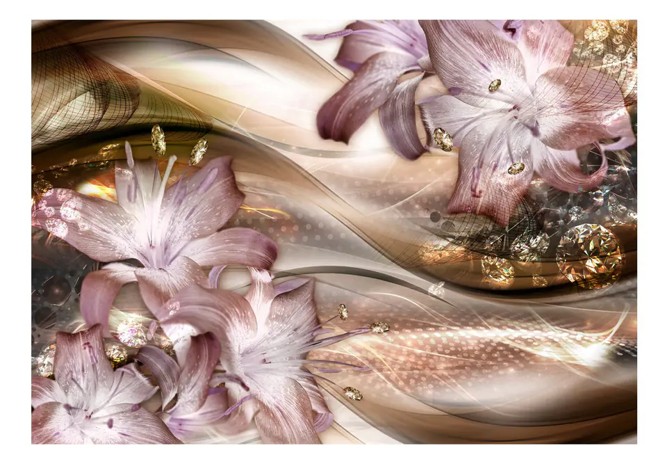 Fototapeta - Lilie na fali (brązowy) rozmiar 343x245, wykończenie Samoprzylepna