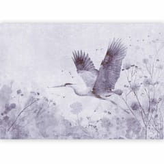 Fototapeta - Majestatyczny lot - żuraw w locie w monochromatycznej, chłodnej kolorystyce rozmiar 490x350, wykończenie Samoprzylepna