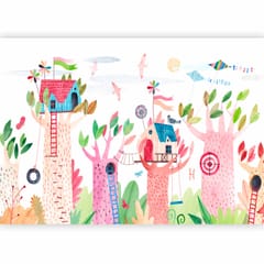 Fototapeta - Malowane domki na drzewie - kolorowa fantazja z latawcami dla dzieci rozmiar 245x175, wykończenie Samoprzylepna