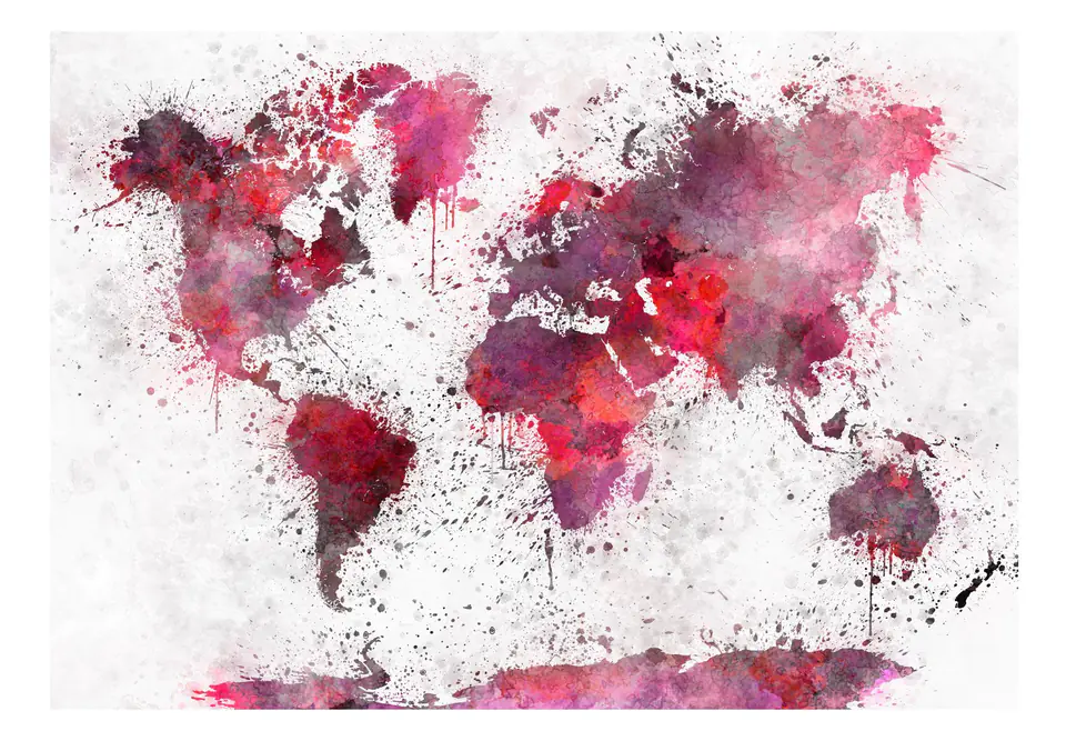 Fototapeta - Mapa świata: czerwone akwarele rozmiar 200x140, wykończenie Standard
