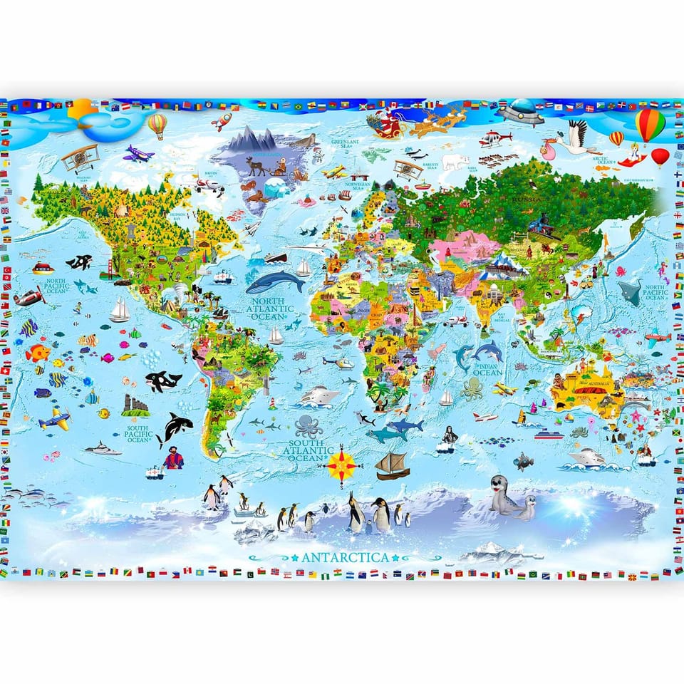 Fototapeta - Mapa świata dla dzieci rozmiar 250x175, wykończenie Premium