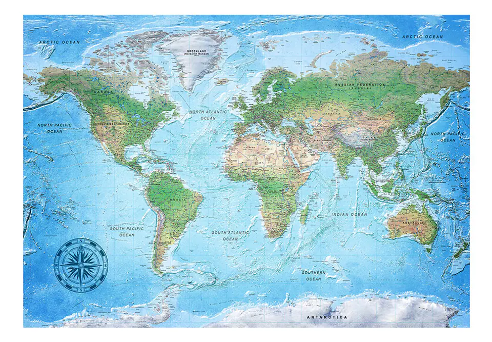 Fototapeta - Mapa świata: Tradycyjna kartografia rozmiar 343x245, wykończenie Samoprzylepna