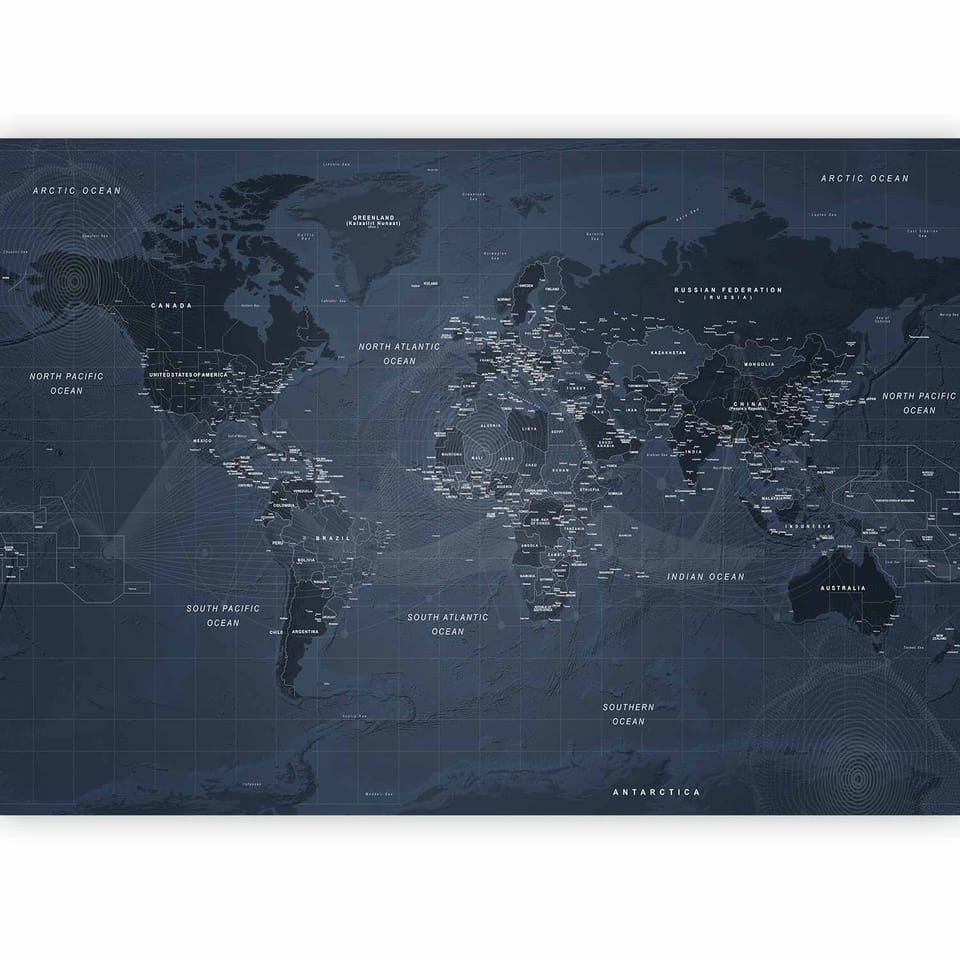 Fototapeta - Mapa świata w kolorze niebieskim - kontynenty z napisami po angielsku rozmiar 300x210, wykończenie Premium
