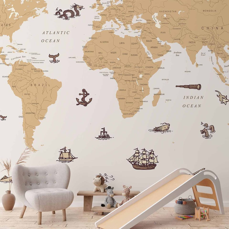 Fototapeta - Mapa wilków morskich - państwa z ilustracjami pirackimi rozmiar 150x105, wykończenie Wodoodporna